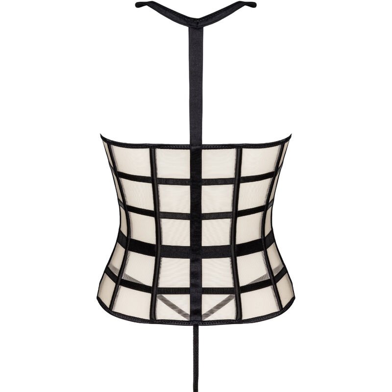 Un ensemble deux pièces composé d’un corset sensuel et bustier et d’un string noir sexy. Le corset est doté d’une fermeture éclair sur le devant, ce qui le rend facile à enfiler. Les couleurs de l’ensemble sont le noir et le beige, qui créent ensemble une combinaison attrayante. Il convient également de prêter attention aux détails séduisants tels qu’un col noir ou des ceintures noires disposées de manière à mettre en valeur au mieux la taille. Ce qui ressort le plus de ce corset, ce sont les découpes qui exposent la poitrine. Cela rend l’ensemble très audacieux et provocateur. Il n’y a pas grand-chose à laisser à l’imagination. Les autocollants pour tétons seront un excellent ajout au jeu et ajouteront un peu de piquant.
